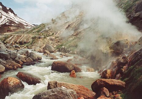 По дощатым настилам дорога ведет вниз, в пахнущий сернистым дымом каньон, где со скал стекают теплые струи водопадов, где с грохотом начинает выбрасывать из жерл фонтаны пара и струи воды на десятки метров гейзер Малый. Долина гейзеров - лишь одна из достопримечательностей Камчатки, которые должны привлекать сюда туристов со всего света. Избалованный здешними красотами проводник Геннадий Волынец рассказывает: Геннадий Волынец: Долина гейзеров - это совершенно раскрученный рекламный продукт. Это - зубная паста "Бленд-а-мед". Гейзеры есть на Камчатке, крае Долины гейзеров, в разных, самых разных местах. Михаил Соколов: Есть еще и вулканы, Паратунские и Хойниковский термальные источники, есть ледники, где можно и летом кататься на горных лыжах, рыбалка. Процветает медвежья охота. В прошлом году на Камчатке побывало примерно 7 000 иностранных туристов, да примерно 20 000 своих. Есть 25 баз отдыха, реконструируются гостиницы. Рассказывает заместитель начальника управления туризма администрации Камчатской области Тамара Тутушкина. Тамара Тутушкина: Большая реконструкция произведена в гостиницах "Авача", "Петропавловск". Это сегодня лучшие гостиницы. Это сегодня база отдыха "Голубая лагуна" и, значит, вот гостиница "Вирджиния". Это фирма "Балкан-тур", которая заложила гостиницу на 60 мест в Паратунке. Это сегодня - "Арт-отель", который построен предпринимателем Лабутиной за счет своих собственных средств, на 14 номеров. Это сегодня - гостиницы в Эссо". Михаил Соколов: Некоторые эксперты считают, что туризм на Камчатке стагнирует, поскольку иностранцев напугал приход к власти в губернии в декабре 2000 года коммуниста-губернатора Михаила Машковцева. Сам губернатор Машковцев с этим спорит. Михаил Машковцев: Никаких там замораживаний, сокращений контактов не было. Это предвыборные сказки, которыми утешали сами себя мои политические оппоненты. Камчатка - это благодатнейший край для экстремального туризма. Но, как выяснилось, в мире не так много желающих заниматься экстремальным туризмом.