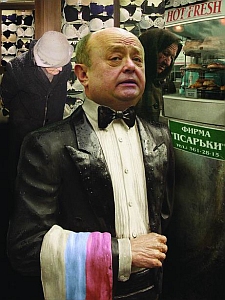 И далее еще на 200 полотнах многолетний политический паноптикум в лицах людей, от решений и действий которых зависела и зависит судьба миллионов. Многоперсонажные картины описать вообще невозможно, но полотно, например, под названием "Инаугурация, Или Мистерия в стиле Босха" объединяет весь возможный публичный бомонд минувших 15 лет. На картинах более 50 персонажей политической тусовки: президенты, министры, депутаты и обслуживающий их персонал, от прессы до шоу-бизнеса. Так, Андрей, в общих чертах правильно все? Андрей Будаев: Очень точно. Я вообще не думал, что в формате радио можно обсуждать работы. Спасибо вам за этот эфир, я благодарен вам. Вы меня предупреждали, если мы с Александром Минкиным увидимся в студии и будем петь дифирамбы друг другу... Анна Качкаева: Нет-нет, вот этого я вам точно не позволю. И сразу, чтобы не было дифирамбов, скажу, что слышала очень разные мнения по поводу того, что делает Андрей Будаев: восторженные - от политизированной публики, снисходительные - от некоторых персонажей, которые изображены на картинах, возмущенные - от эстетов. Китч, глазуновщина - говорят одни. Настоящее, нужное, гражданское плакатное искусство - говорят другие. Вы, Андрей, как сами определяете, что вы такое делаете? Андрей Будаев: За последнее время я не видел тех визуальных изображений, которые бы меня удовлетворяли. Я читаю не большое количество прессы, но, скажем, "Московский комсомолец", в котором публикуется Александр Минкин. И есть позиция просто гражданина, и я вас уверяю, что все эти работы связаны с тем, что есть темы, которые не озвучены визуально. Литературно это может сделать только один человек, который сидит сейчас в студии, визуально, я надеюсь, сделаю это я. Оценки, что это китч, вульгарно и некрасиво, вы знаете, я думаю, что в последние дни работы выставки, а она, к сожалению, была всего три на таком пике... В советские времена тому же Глазунову давали два месяца. Если бы была неделя или две, я думаю, большое количество москвичей смогло бы посмотреть ее. Анна Качкаева: Сколько в день приходило - тысяча, две? Андрей Будаев: Вы знаете, три тысячи человек было в день закрытия. И директор Манежа мне сказал, что в воскресенье, и в понедельник шли люди, которые хотели посмотреть выставку. А оценку дает, наверное, тот зритель, политизированный, к счастью, в нашей стране. Анна Качкаева: Александр, вы персонаж одного из полотен. Я просто опишу его нашим радиослушателям, которые не имеют возможности увидеть эти картины. Хотя в Интернете уже очень многое размещено, и, в принципе, можно кликнуть на фамилию Будаев и посмотреть вот эти вот все инсталляции, фото-живописные цитаты, я даже не знаю, как это еще назвать, в общем, все вместе, некая такая современная смесь. Так вот, Александр Минкин, кстати, единственный из всех этих персонажей, который не является политиком, я так других не нашла. Там есть шоу-бизнес, пресса, скорее даже чиновники от прессы, а Александр Минкин - журналист, и он, как Бог, взирает из небесной канцелярии то ли на ангела, то ли на архангела, который со спины похож на Владимира Путина и который, соответственно, парит над Кремлем и Москвой. Я даже не знаю, как описать выражение лица Александра, то ли снисходительное, то ли с грустью, то ли осуждающее. В общем, смесь такая, смотрите вы на человека, со спины похожего на президента.